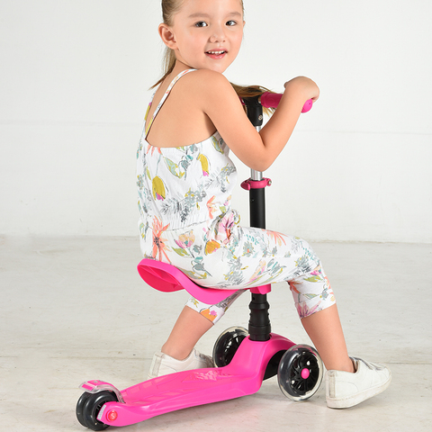 FLT 3 tekerlekli Scooter çocuklar için 2 in 1 erkek ve kız Scooter ayarlanabilir yükseklik